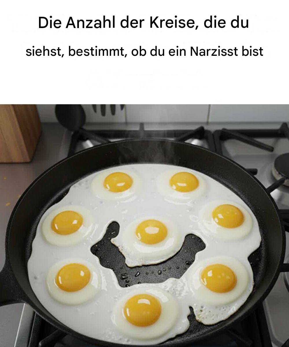 Auf den ersten Blick wirkt das Bild simpel: eine Pfanne voller Spiegeleier, die verspielt angeordnet sind. Doch die fettgedruckte Überschrift darüber birgt eine dramatische Behauptung:
