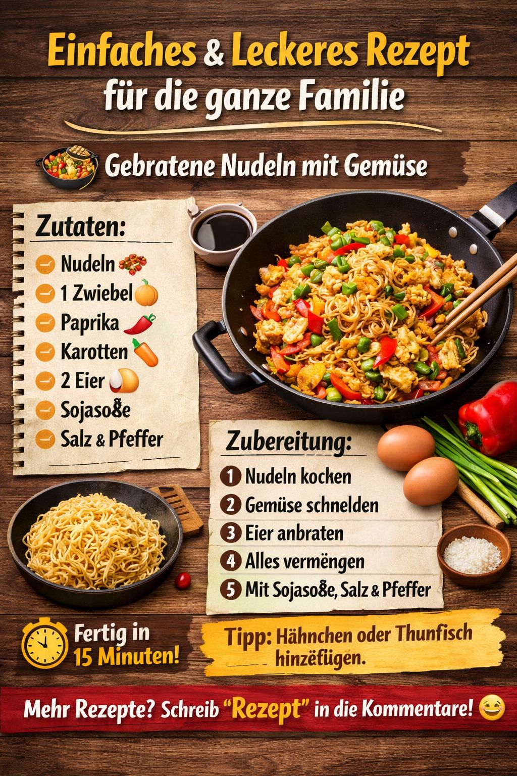 Einfaches und leckeres Rezept für die ganze Familie Ouadie RhabbouronApril 15, 2026 Du hast wenig Zeit, aber möchtest trotzdem etwas Leckeres kochen? 👩🍳👨🍳 Hier ist ein einfaches und schnelles Rezept, das jeder zuhause machen kann! 🥘 Gebratene Nudeln mit Gemüse Zutaten: Nächste»» Wie Ihre Schlafposition verrät, ob Sie faul sind Hausgemachter Pistazienpuddingkuchen Ich habe Schuhe herausgeholt Wähle eine Nuss, um herauszufinden, ob du faul oder ein Workaholic bist Dieses Rezept ist mein täglicher Favorit Linien auf Ihren Fingernägeln: Was sie über Ihre Gesundheit verraten könnten